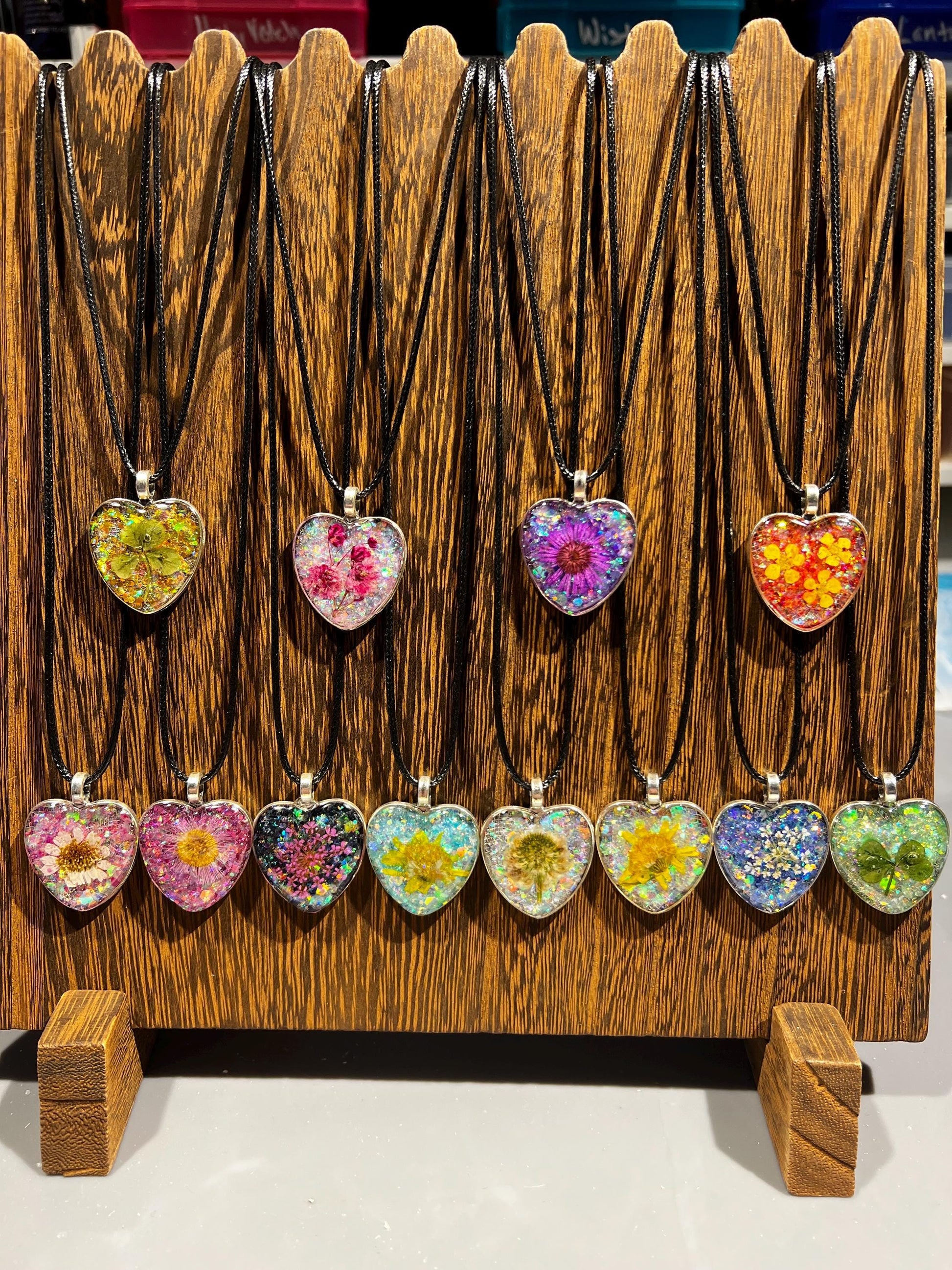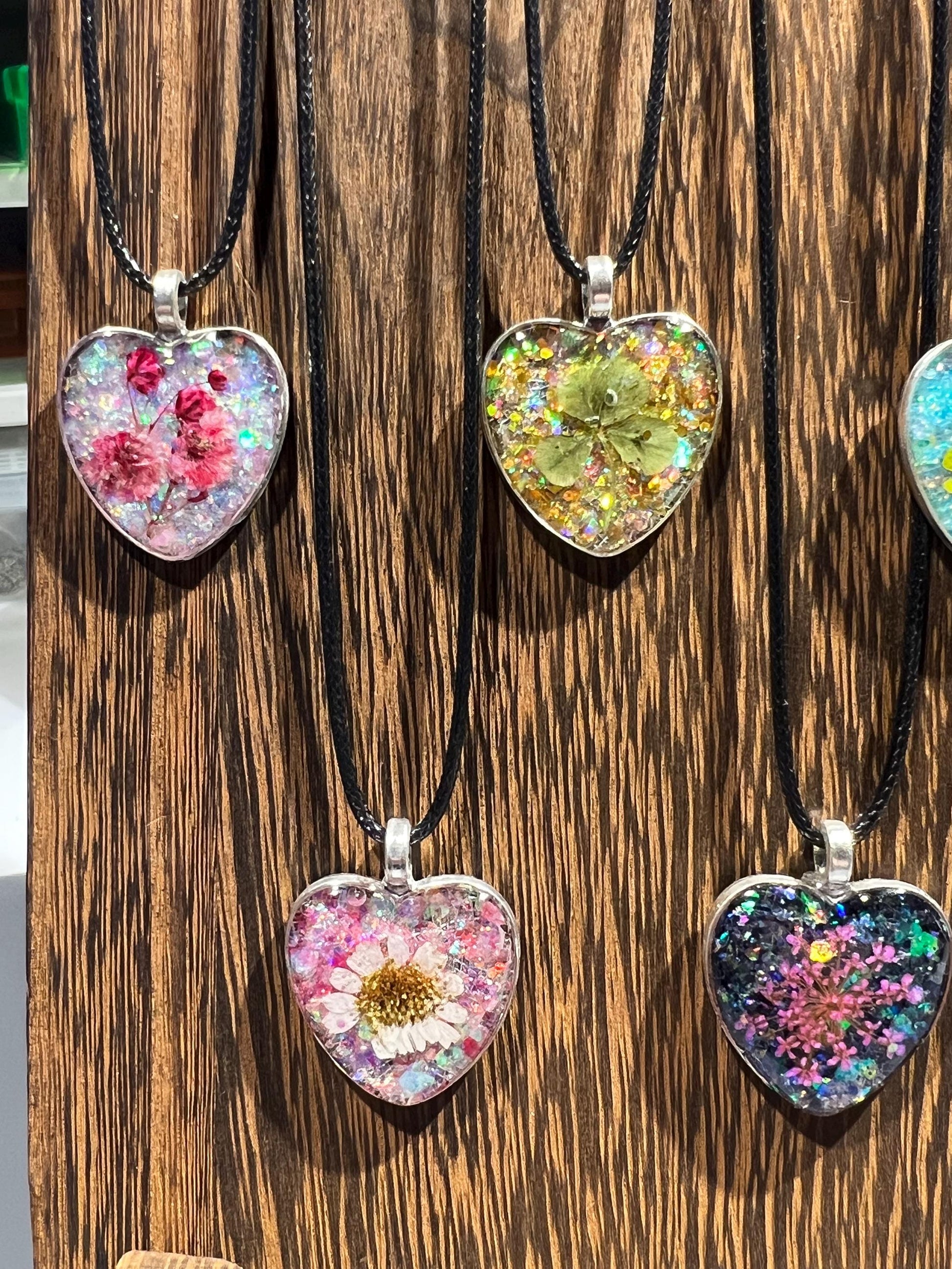 Whimsical Sweetheart series - Pressed, wild Queen Anne’s Lace preserved beautifully in a heart-shaped pendant on a 19.7" leather cord necklace.